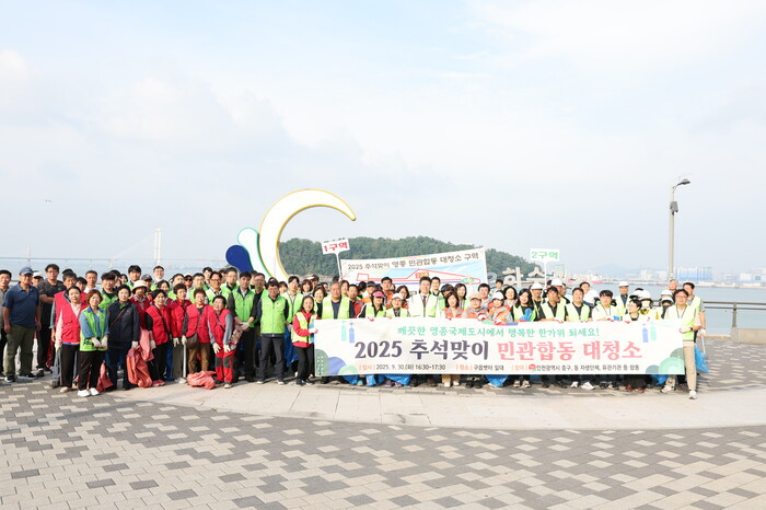 [인천=문찬식 기자] 인천 중구(구청장 김정헌)는 지난 9월 30일 영종국제도시 구읍뱃터 일대에서 ‘2025년 추석맞이 민관합동 대청소’를 실시했다고 밝혔다.
