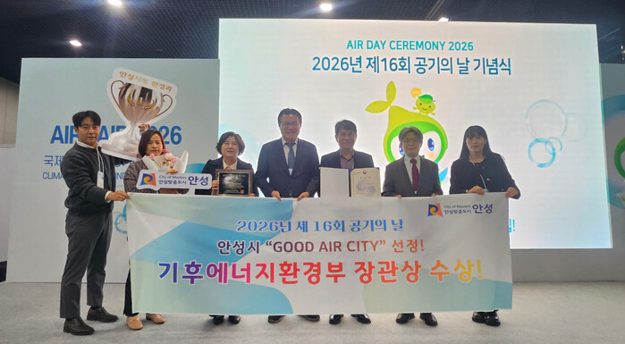 [안성=오왕석 기자] 안성시는 지난 4월 8일 열린 ‘제16회 공기의 날’ 기념행사에서 ‘맑은 공기 도시(GOOD AIR CITY)’로 선정됨과 동시에 최고상인 ‘기후에너지환경부 장관상’을 수상했다고 밝혔다.