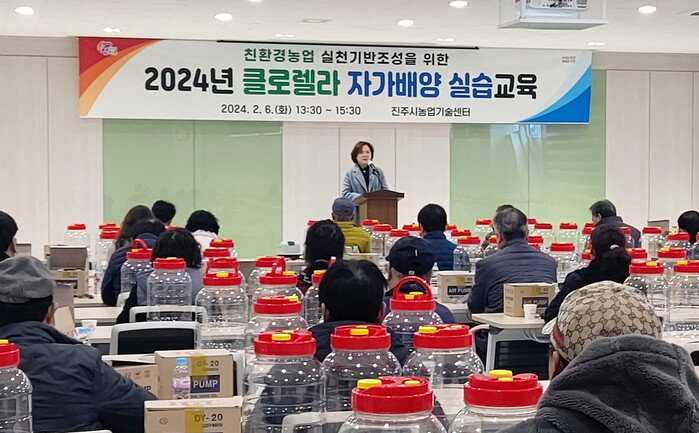 진주시는 6일 농업기술센터에서 친환경농업 실천 기반 조성을 위한 ‘클로렐라 자가배양 실습교육’을 실시했다.