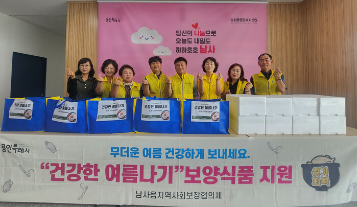 처인구 남사읍 지역사회보장협의체는 29일 지역 저소득 취약계층의 건강한 여름나기 지원을 위해 여름철 보양식품을 30가구에 전달했다.