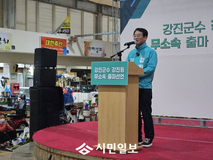 지난 8일 더불어민주당을 탈당하고, 강진군수 선관위에 예비후보로 등록한 강 후보는 “오직 군민만을 바라보며 당당히 나아가기 위해, 저의 정치적 동반자인 더불어민주당을 잠시 떠나기로 결심했다”며 무소속 출마를 선언했다.