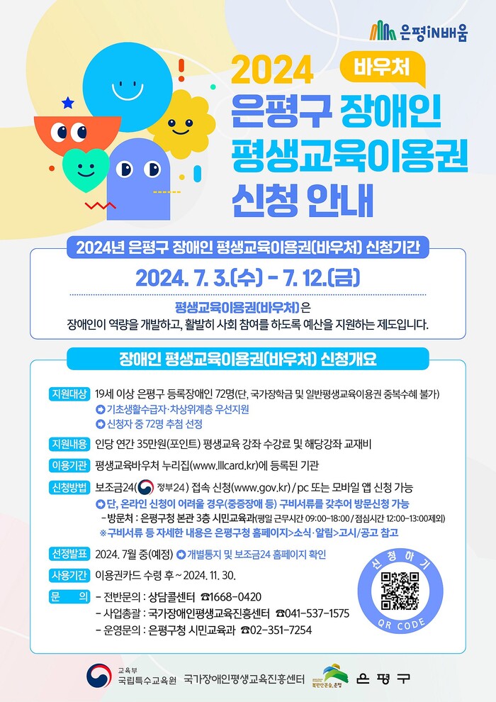 [시민일보 = 이대우 기자] 은평구(구청장 김미경)가 오는 12일까지 장애인의 평생교육 참여기회 확대와 역량개발 지원을 위한 ‘장애인 평생교육이용권’ 이용자를 모집한다.