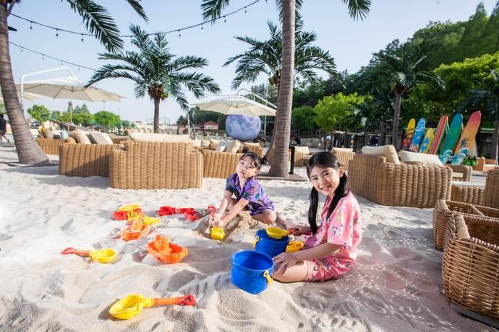 또한 야외 파도풀에는 지름 10미터 크기의 거대한 보름달이 떠있고, 3미터 높이의 해적선 모래 조각, 셀카 거울존 등 포토스팟이 마련돼 있다. 백사장 모래놀이 체험도 마련돼 있어 어린이 동반 가족들이 참여하기에 좋다.