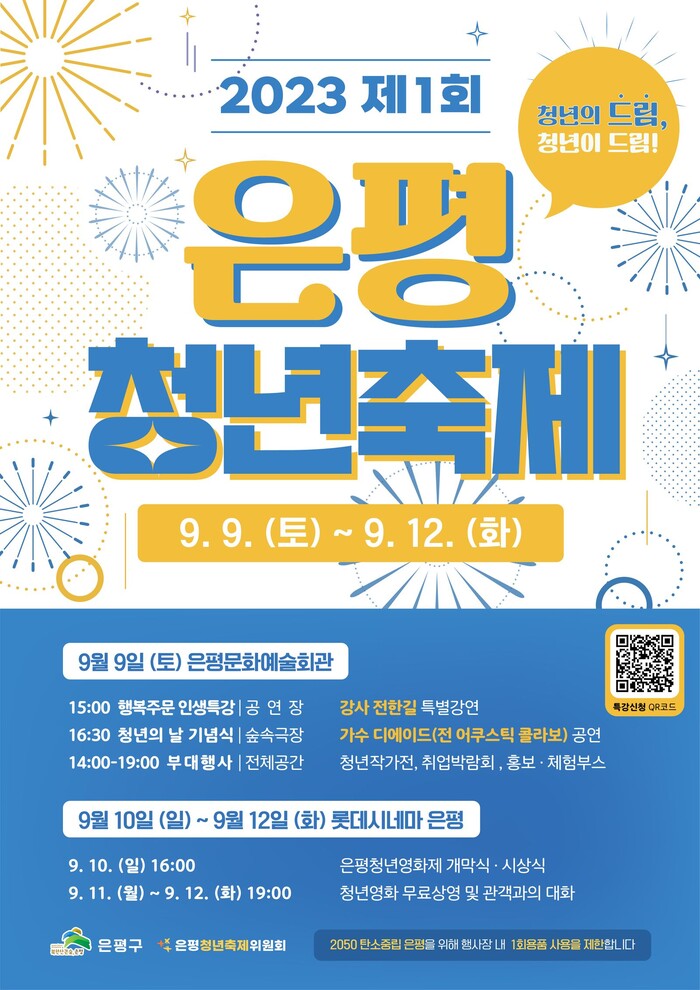 이번 행사는 은평구 첫 공식 청년축제다. ‘청년의 날’ 행사를 시작으로 ‘은평청년영화제’ 등 다양한 프로그램이 진행될 예정이다.