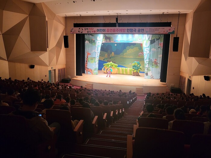 | ▲ 강진군보건소, 지난 17일 강진아트홀 대공연장에서 관내 어린이짐 및 유치원생, 초등학교 저학년 등을 대상으로 흡연음주예방 인형극 공연 / 강진군 제공 |