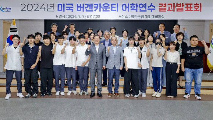 김윤철 합천군수는 "오늘 결과발표회는 미국에서 학생들이 직접 보고 느낀 경험과 그로 인한 성취감을 보여주는 자리로, 학생들이 더 큰 꿈을 향해 나아가길 바란다"며 응원의 메시지를 전했다.