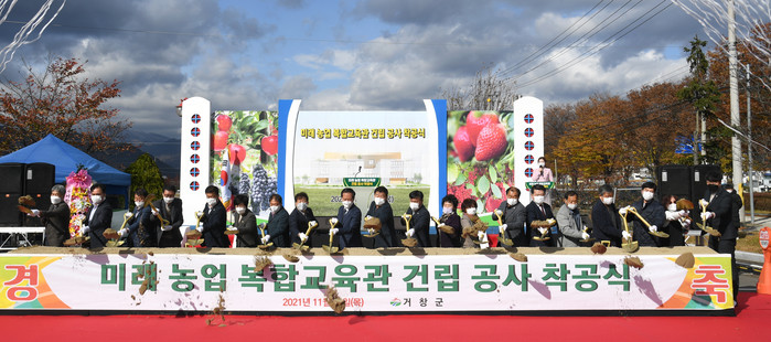 한편, 거창군 미래농업복합교육관 건립 사업은 2019년부터 준비하여 2020년도 농촌진흥청 공모사업에 선정되어 국비 40억 원 도비 12억 원을 확보했으며, 지난 해 설계공모를 거쳐 이날 착공하게 되었으며 2022년 준공을 목표로 하고 있다.