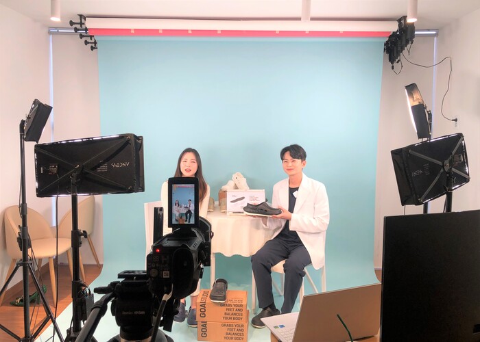 | ▲ 라이브커머스 생방송에서 신발을 판매하는 모습.(사진=영등포구청 제공) |