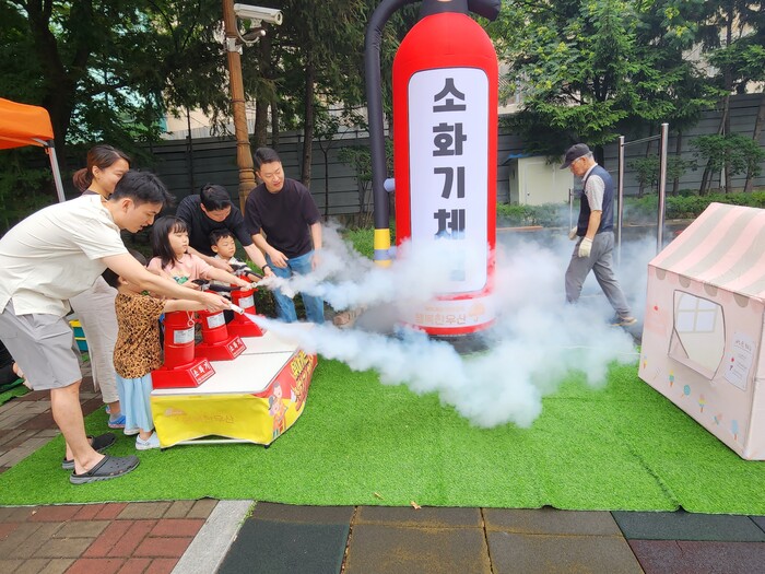| ▲ 2024년 상반기 ‘찾아가는 공동주택 재난 안전체험 교육’ 시범 운영 모습 (사진=성동구청 제공) |