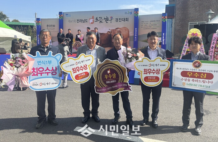 영암읍 문영식 농가는 번식1부 최우수상, 미암면 함영찬 농가는 번식2부 우수상, 신북면 이재성 농가는 고급육부 장려상을 각각 받았다.