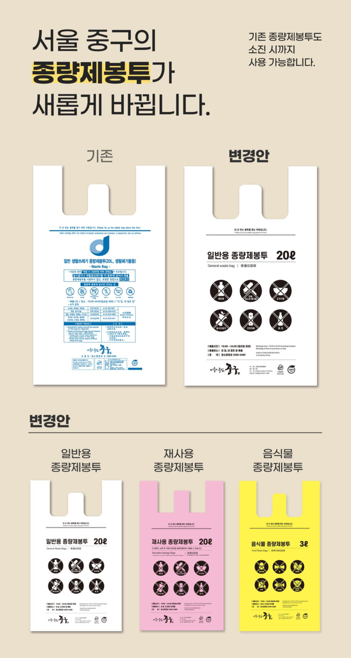 [시민일보 = 여영준 기자] 중구(구청장 김길성)는 오는 9월부터 새롭게 바뀐 종량제봉투를 판매한다고 16일 밝혔다.
