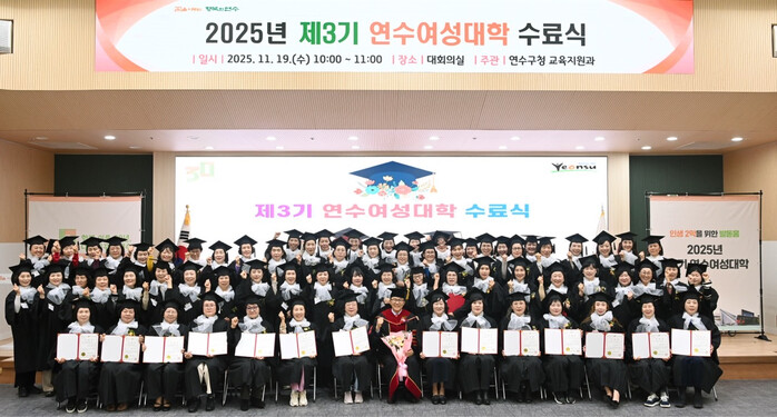 한편, 제3기 연수여성대학은 지난 8월 27일 입학식을 시작으로 총 12회에 걸쳐 운영됐으며, 수료생들은 이후 학습동아리 활동, 지역사회 봉사, 축제 참여 등을 통해 배움을 실천하는 ‘학습 나눔 활동’도 이어갈 예정이다.