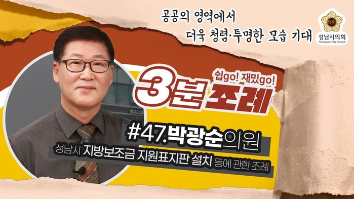[성남=오왕석 기자] 성남시의회(의장 윤창근)는 7일 ‘성남시의회 3분 조례’ 마흔일곱 번째 영상을 시의회 공식 SNS에 게시했다.