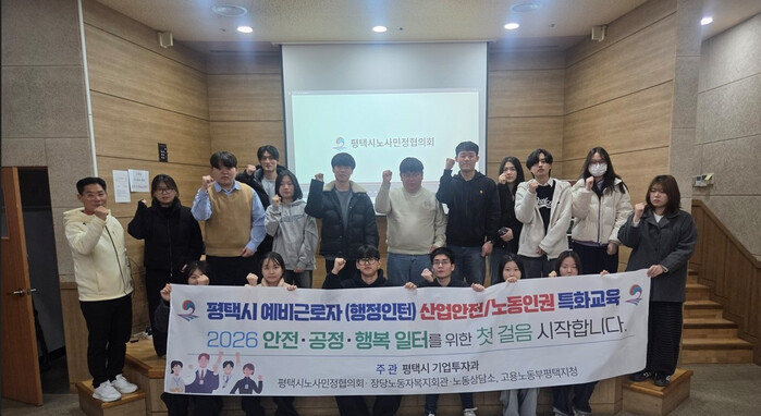 이날 교육에는 대학생 인턴 20여 명이 참석했으며, 고용노동부, 평택시노동상담소, 평택시 노사민정협의회, 대한산업안전협회, 장당노동자복지회관 등 관계기관이 협업해 실무 중심의 교육을 진행했다.