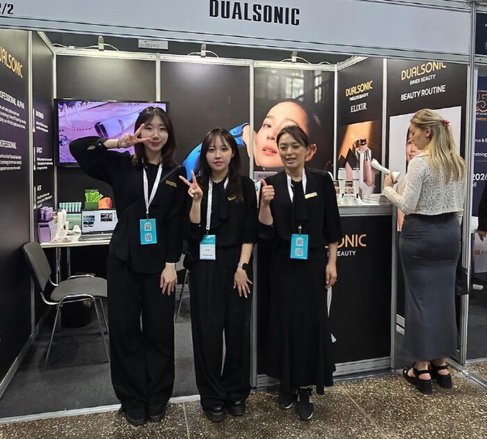두 요원은 프리미엄 홈케어 기기인 ‘듀얼소닉’ 시리즈의 시연과 현장 판매 지원, 통역, 바이어 응대 등을 맡아 제품의 우수성을 효과적으로 전달했다.