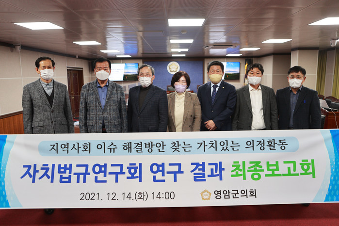 [영암=정찬남 기자] 전남 영암군의회는 최근 자치법규연구회에서 ‘지역사회 이슈 해결방안을 찾는 가치있는 의정활동 연구결과’ 최종보고회를 개최했다.