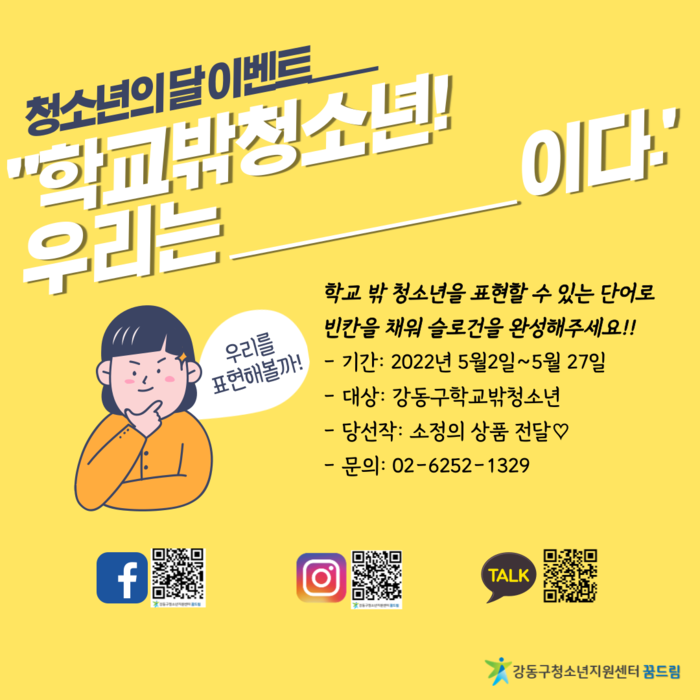 관련 상담 및 프로그램 신청은 강동구청소년지원센터로 문의하면 자세히 안내받을 수 있다.