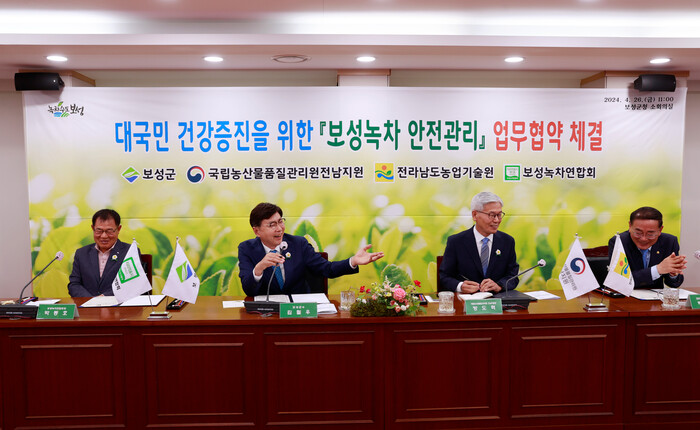 이번 협약은 농산물 지리적표시 제1호로 등록된 ‘보성녹차’의 친환경 인증(유기)을 통한 엄격한 품질 관리와 안전한 차 생산을 목표로 4개 기관, 단체 40여명이 참석한 가운데 이뤄졌다.