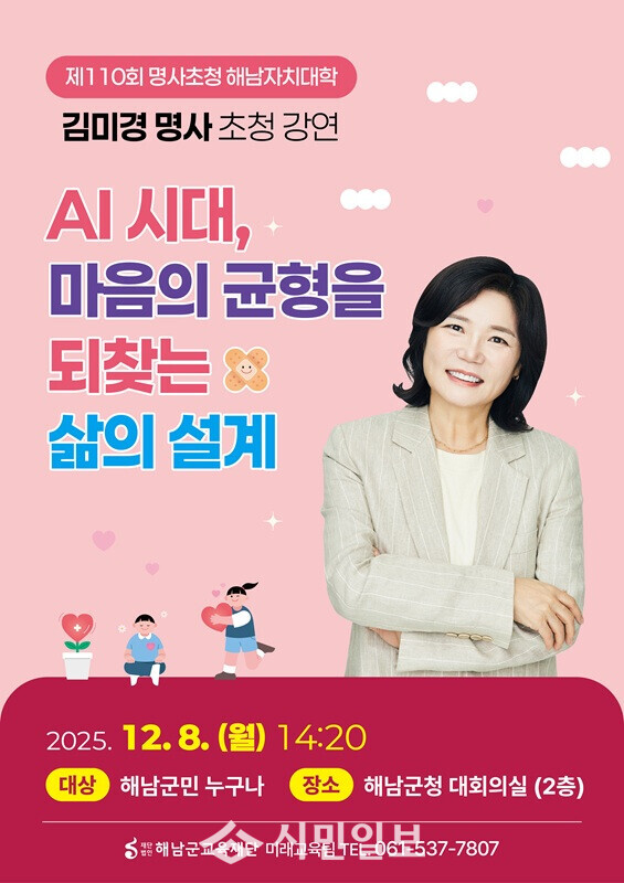 | ▲ 해남자치대학 김미경 명사초청 홍보 이미지 / 해남군 제공 |