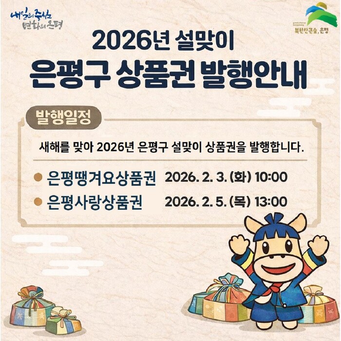 김미경 구청장은 “은평땡겨요상품권과 은평사랑상품권은 소상공인과 주민 모두에게 도움이 되는 생활 밀착형 정책”이라며 “이번 설 명절을 계기로 지역 상권 이용이 늘고 주민 부담도 한층 완화되길 바란다”고 밝혔다.