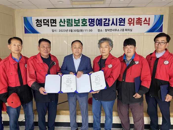 이병걸 청덕면장은 “산불은 발생시기가 정해져 있지 않아 지속적으로 경각심을 가지고 예방하는 노력이 중요하다.”며 “산림보호명예감시원 위촉을 통해 공백없는 산불감시망을 구축하고 산불없는 청덕면을 만들 수 있도록 노력하겠다.”고 전했다.