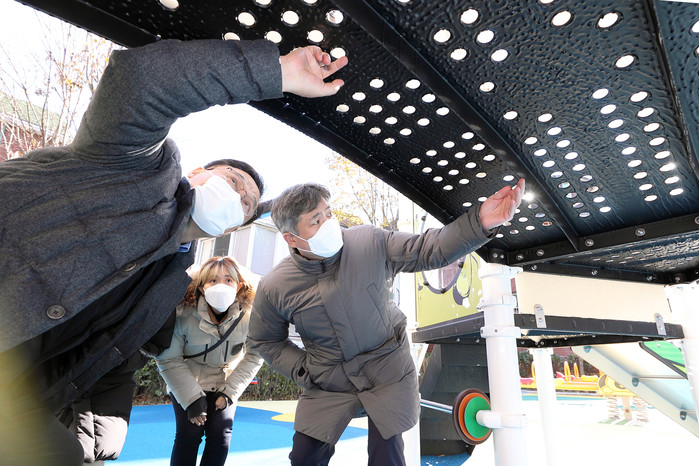 이날 김 의원은 구청 관계공무원으로부터 경과보고를 받은 후 주민의 눈높이에서 현장을 면밀히 살폈다. 어린이들의 안전한 놀이 공간 확보, 주민들의 편의시설 등 시설을 꼼꼼히 둘러보며 안전관리, 개선사항, 이용 활성화 방안 등에 대해 참석자들과 의견을 나눴다.