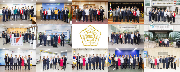| ▲ 안산시의회 의장단이 최근 유관 기관 및 단체 방문을 실시하고 제9대 의회 후반기 의장단의 출범을 알렸다. 사진은 의장단이 앞서 22일과 23일, 26일 3일 간에 걸쳐 14곳의 기관 및 단체를 방문한 모습. |
