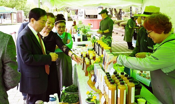 | ▲ 성낙인 군수가 강소농 직거래장터를 둘러보고 있다 |