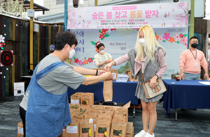 밀양시는 지난 25일과 26일에 진장문화예술플랫폼 미리미동국에서 ‘벚꽃 찍고 봄꽃 받자’라는 주제로 봄맞이 봄꽃 나눔 행사를 가졌다.