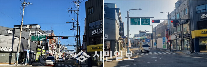 | ▲ 해남읍 지중화사업 성과 지중화사업 전(왼 쪽)과 후(오른 쪽) 자료사진 / 해남군 제공 |