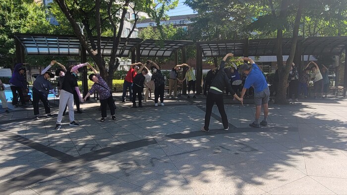 | ▲ 어르신 바르게 걷기 프로그램 진행 모습. (사진=중랑구청 제공) |