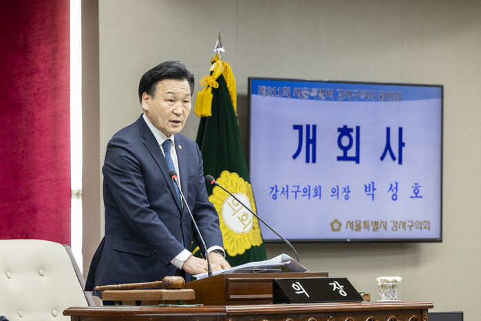 | ▲ 강서구의회 박성호 의장이 제311회 임시회에서 개회사를 하고 있다. (사진=강서구의회 제공) |