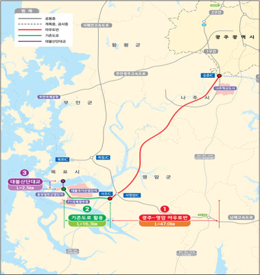 사업비는 광주~영암 초고속도로 2조6000억원, 대불산단대교 1900억원 등 총 2조7900억원이 소요될 예정이다.