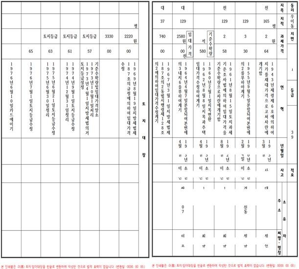 이에 구는 토지 및 임야대장 약 5만4000면(面)의 지번, 지목, 면적, 기준수확량등급, 소유자 정보 등을 한글로 해석할 계획이다.