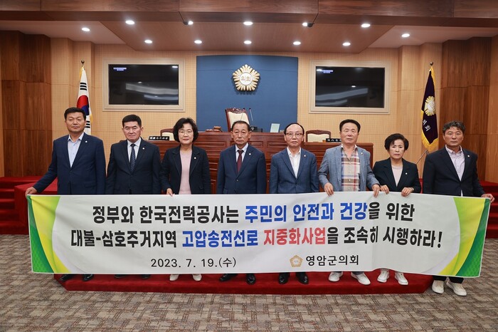 이날, 강찬원 의장을 비롯한 의원 모두는 주민들과 미래세대의 안전한 주거여권과 건강권 확보를 위해 대불국가산업단지 주거지역의 송전선로 지중화사업을 추진해야 한다고 목소리를 높였다.
