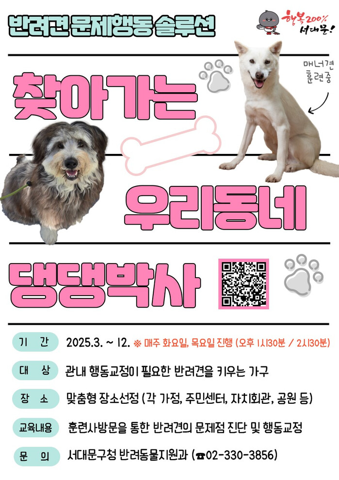 이성헌 서대문구청장은 “이번 프로그램을 통해 반려견과 보호자 간 유대감이 강화되고 성숙한 반려동물 문화가 확산되길 기대한다”고 말했다.