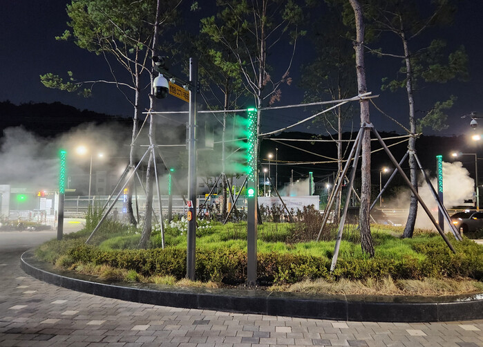 설치된 쿨링포그는 기온이 28도 이상일 경우 자동으로 가동되며, 매일 오전 8시30분~오후 9시까지 20분간 가동 후 10분 정지하는 방식으로 운영된다.
