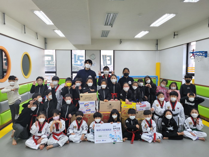 서울 도봉구 창4동이 최근 지역내 ‘자운태권도’로부터 사랑의 라면 700개를 후원받았다. 창4동은 취약계층 가정을 방문해 후원물품을 전달하고, 동절기 안부를 살필 예정이다. 사진은 전달식에서 자운태권도 유아반·초등부 어린이들과 관계자들이 기념촬영을 하는 모습. (사진제공=도봉구청)
