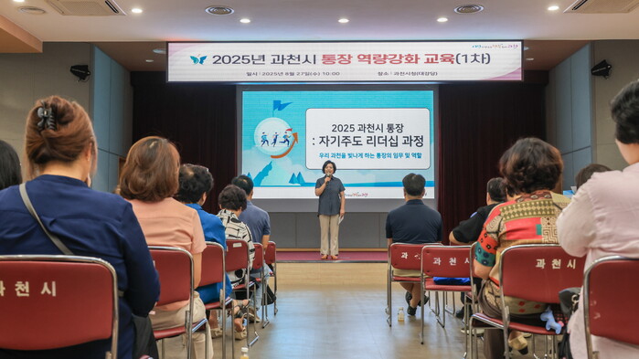 경기 과천시가 27일과 28일 양일간 시청 대강당에서 7개 동 통장 150여명을 대상으로 ‘2025년 통장 역량 강화 교육’을 실시했다. 사진은 교육에 참석한 신계용 시장이 인사말을 하는 모습. (사진=과천시청 제공)