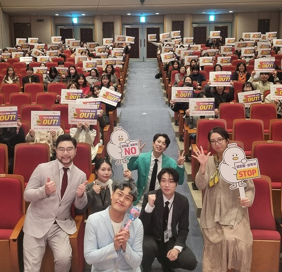 공연 말미 ‘성희롱‧성폭력 NO, 성희롱‧성폭력 OUT’이라는 슬로건으로 예방 캠페인을 펼치며 건강하고 행복한 조직문화 만들기 동참을 다짐했다.