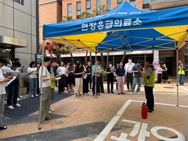 [시민일보 = 박소진 기자] 성동구(구청장 정원오) 보건소가 최근 전 직원과 ‘2025년 상반기 소방 훈련’을 실시했다고 26일 밝혔다.