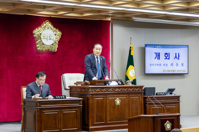 | ▲ 최동철 의장이 제295회 임시회 개회사를 하고 있다. (사진=강서구의회 제공) |
