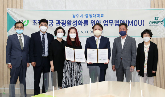 [청주=엄기동 기자] 충북 청주시가 11일 임시청사 직지실에서 충청대학교와 초정행궁 관광활성화 협약을 체결했다.