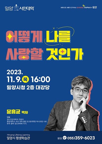 강연은 별도 사전 신청 없이 당일 선착순으로 행사장에 입실하며, 강의료는 무료다. 자세한 내용은 밀양시 평생학습포털 밀양시민대학 강좌정보란을 참고하면 된다.