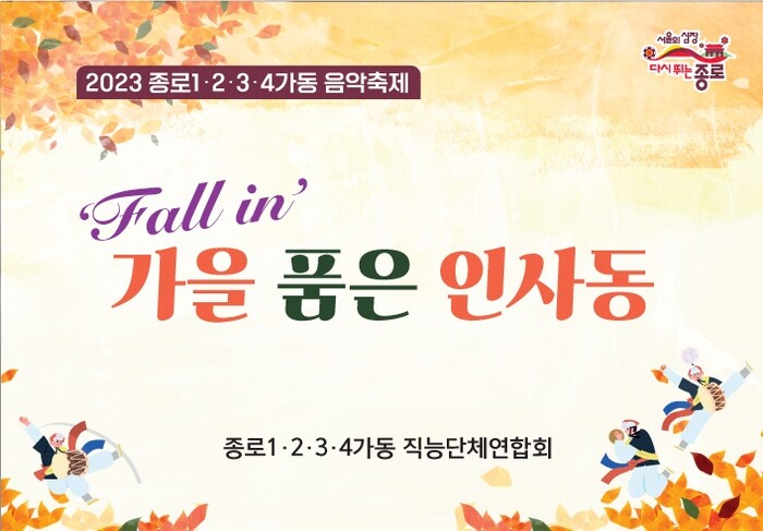 [시민일보 = 이대우 기자] 종로구(구청장 정문헌)는 오는 28일 종로1·2·3·4가동이 인사동 남인사마당에서 음악축제 ‘Fall In 가을 품은 인사동’을 개최한다고 밝혔다.