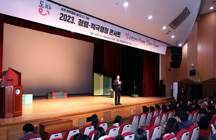 | ▲ 지난해 12월 5일 동작문화복지센터 대강당에서 실시한 ‘2023년 청렴적극행정콘서트’ (사진=동작구청 제공) |