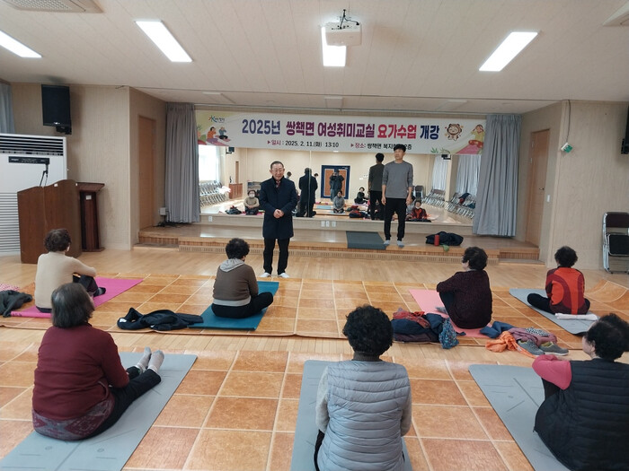 이번 요가수업은 합천군 여성취미교실 운영의 일환으로, 거리와 시간의 제약으로 취미생활을 누리기 어려운 쌍책면 거주 여성들에게 건강하고 활기찬 문화 및 여가 생활 기회를 제공하기 위해 마련되었으며, 이도감 강사의 지도로 올해 12월까지 매주 2회(화,목) 운영된다.