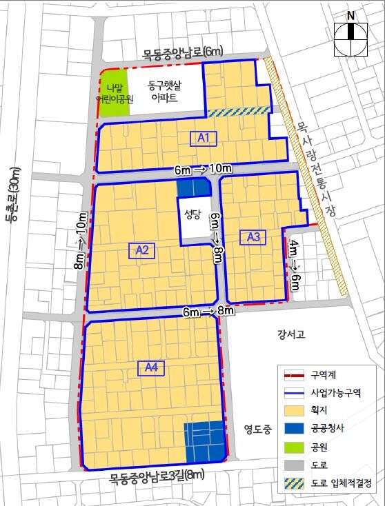 해당 지역은 ▲사업추진구역의 용도지역 상향(제2종, 2종(7층)일반→제3종 일반) ▲목4동 주민센터 등 기반시설 설치 ▲교통량 증가 대응 및 보행환경 개선을 위한 도로 확폭(6~8m→8~10m) 등을 포함해 노후 저층 주거지의 주거환경 개선과 주민들의 삶의 질 향상을 위한 계획을 담고 있다.