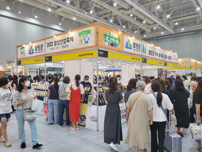 수원메가쇼에는 관내 진앤진푸드, 지리산함양허농부, 1번지양봉원, 오가뷰, 지리산산골흑돼지, 함양천령산약초영농조합법인이 참여하여 부각류, 한과, 효소벌꿀, 다류, 흑돼지 가공품, 산양삼주, 오미자주 등 총 40여종의 특색 있는 우수 농식품을 선보였다.