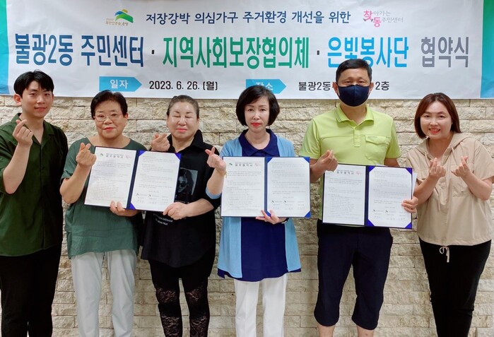[시민일보 = 이대우 기자] 서울 은평구(구청장 김미경) 불광2동주민센터와 동 지역사회보장협의체는 최근 물빛봉사단과 업무협약을 체결했다.